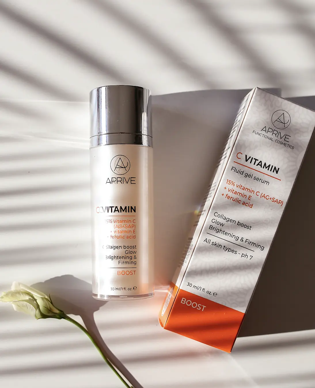 APRIVE Vitamin C Serum za lice ujedinjuje dokazano učinkovitu i snažnu kombinaciju 15% vitamina C, vitamina E i ferulične kiseline (0,5%) uz dodatak hijaluronske kiseline.
